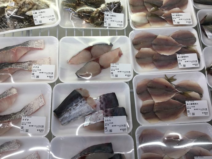 お~いの魚屋では若狭湾で捕れた新鮮な魚介類を販売しています。