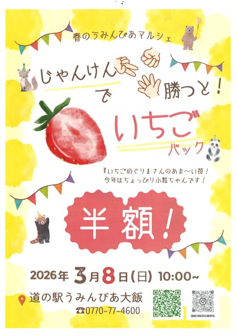 また、じゃんけんに勝てば「いちごめぐり」さんの苺パックを半額でゲットできる企画も!!